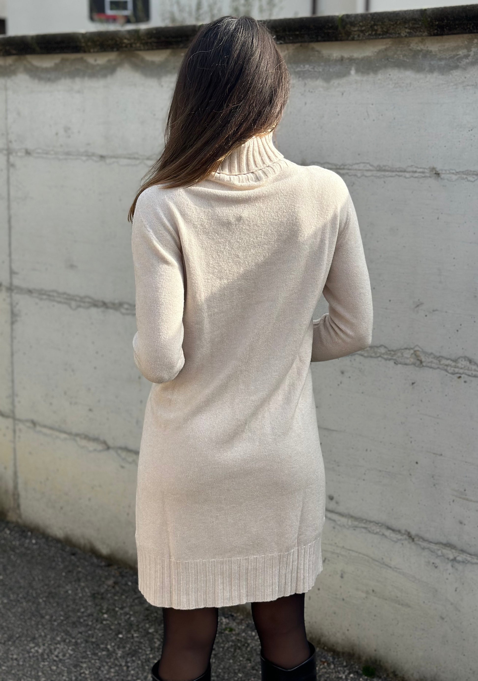 Abito a collo alto in morbida maglia elastizzata avorio.