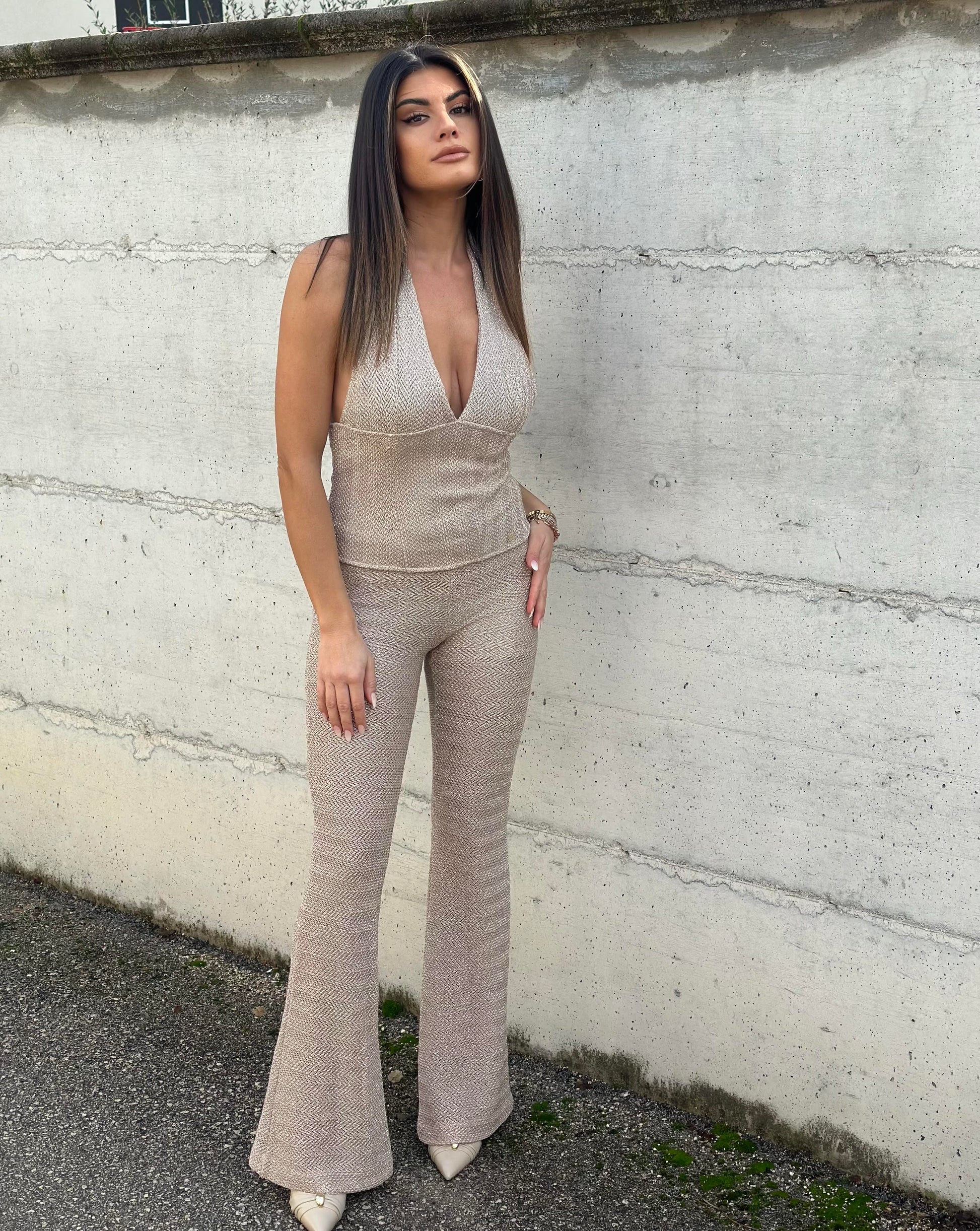 Pantalone in morbido tessuto elasticizzato lurex avorio. Vita elasticizzato. Non pizzica.